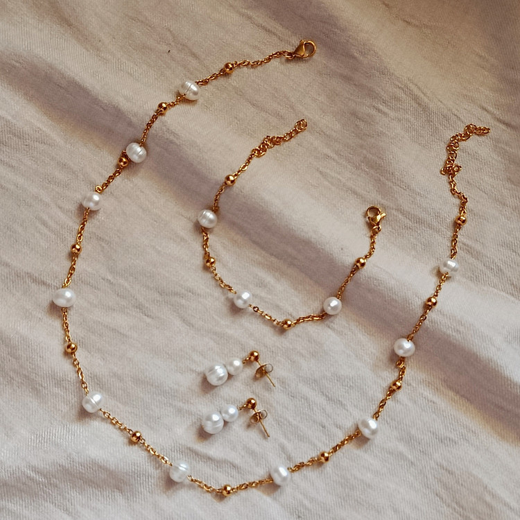 ست گردنبند و دستبند گوشواره مروارید پرورشی اصل خلخالی