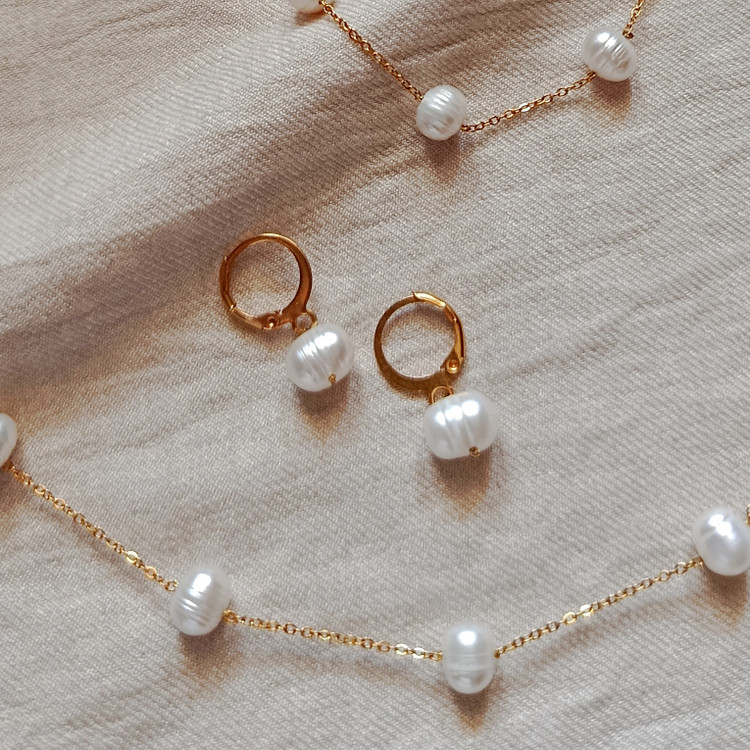 ست گردنبند و دستبند گوشواره مروارید پرورشی اصل زنانه
