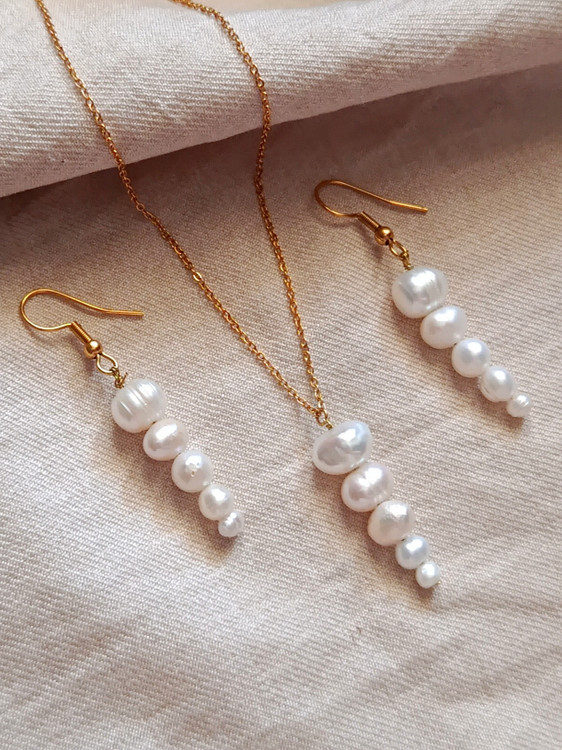 نیم ست گردنبند و گوشواره مروارید پرورشی زنانه اصل