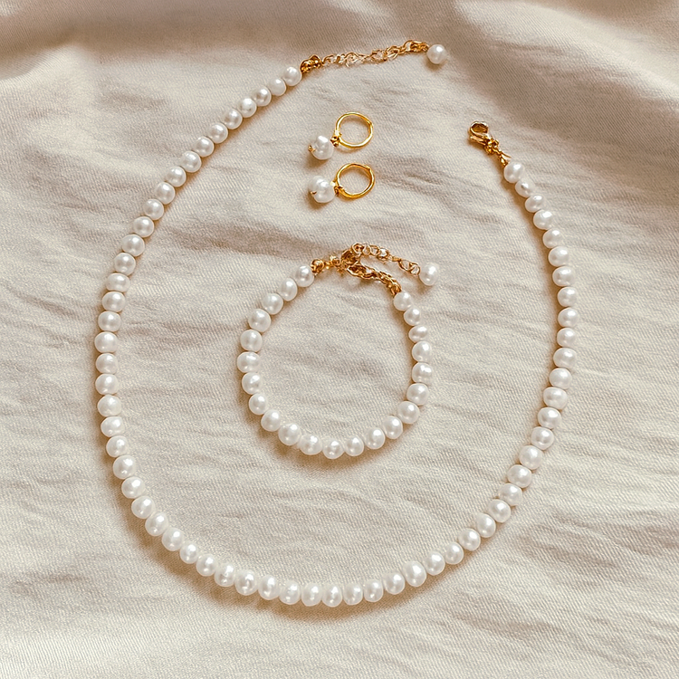 ست گردنبند و دستبند گوشواره مروارید پرورشی اصل زنانه